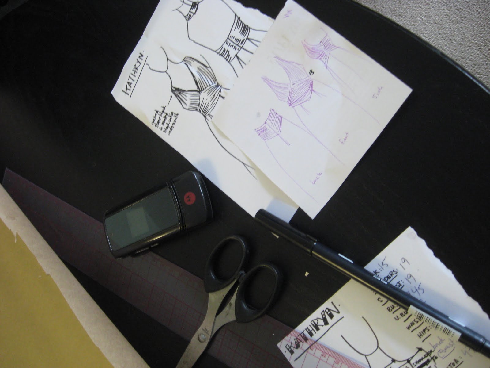 So, on my 35th Birthday today, I have chosen to spend the day blocking out the patterns for both my dress and my Sister-in-Law (and fellow Bridesmaid) Kathryn's dress.